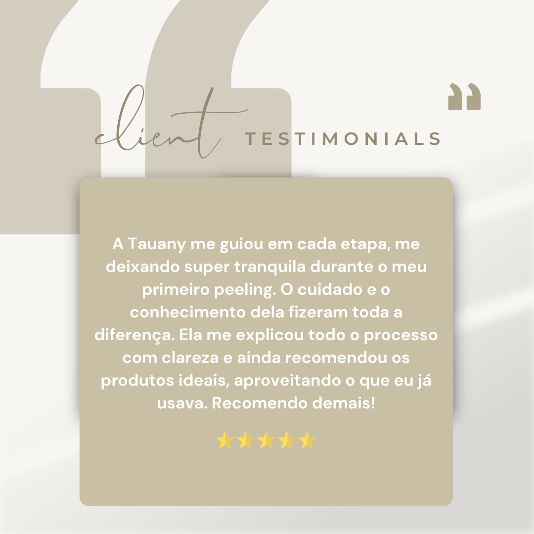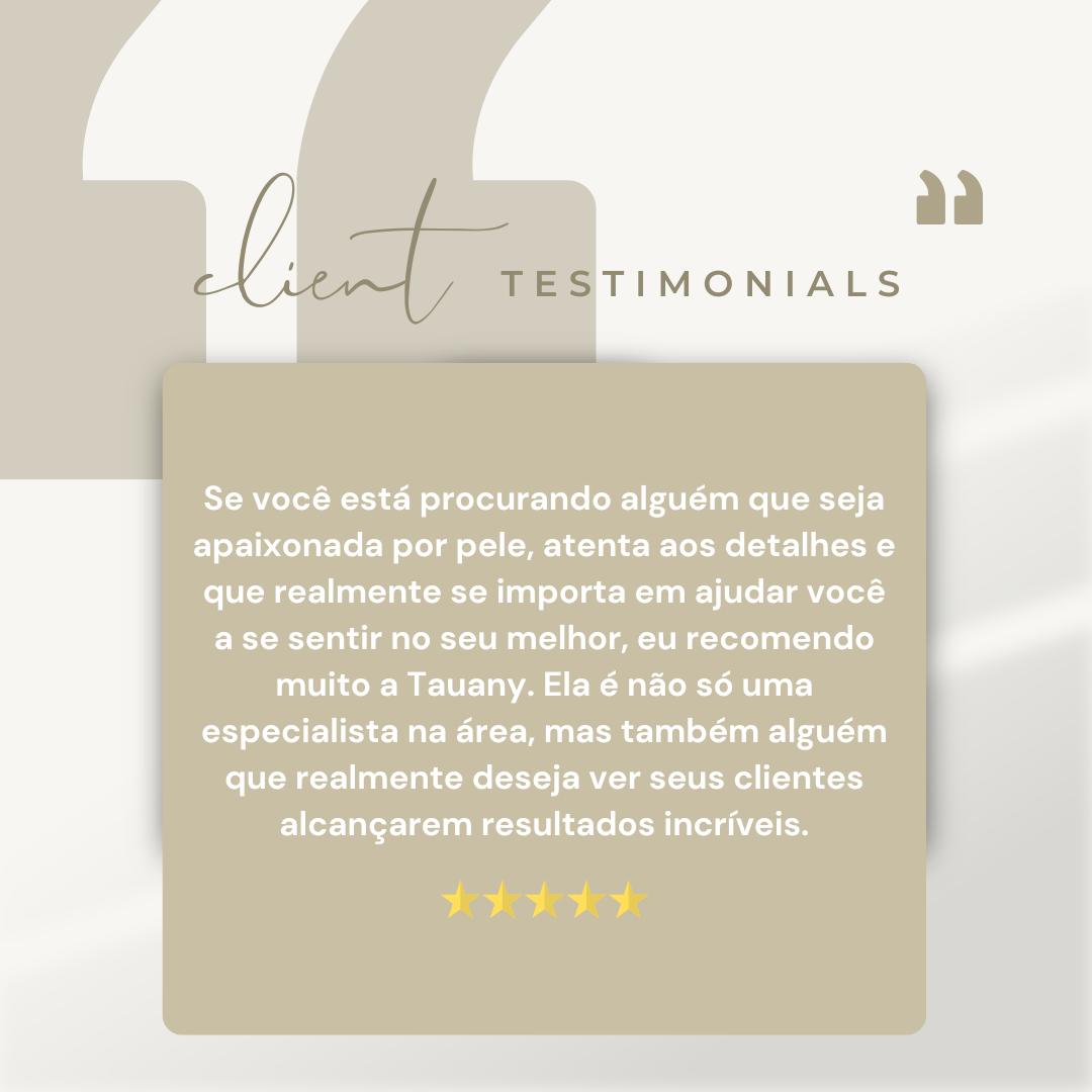 Olá! Sou Tauany, uma esteticista licenciada apaixonada por cuidados com a pele e especializada em oferecer tratamentos faciais luxuosos e focados em resultados. Natural do Brasil, estabeleci minha prática em Miami, Flórida, após um treinamento avançado em estética na cidade de Nova York.